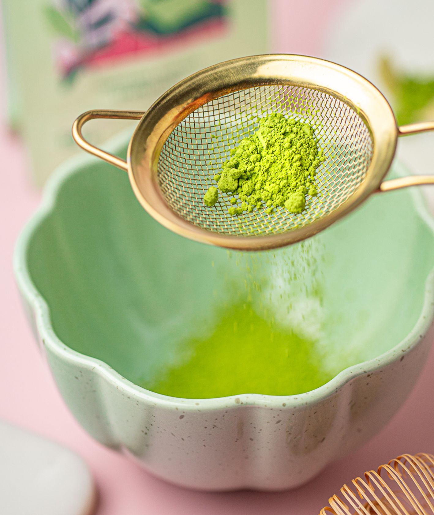 1. Wsyp do miseczki łyżeczkę sproszkowanej matchy (najlepiej przesianej przez sitko).