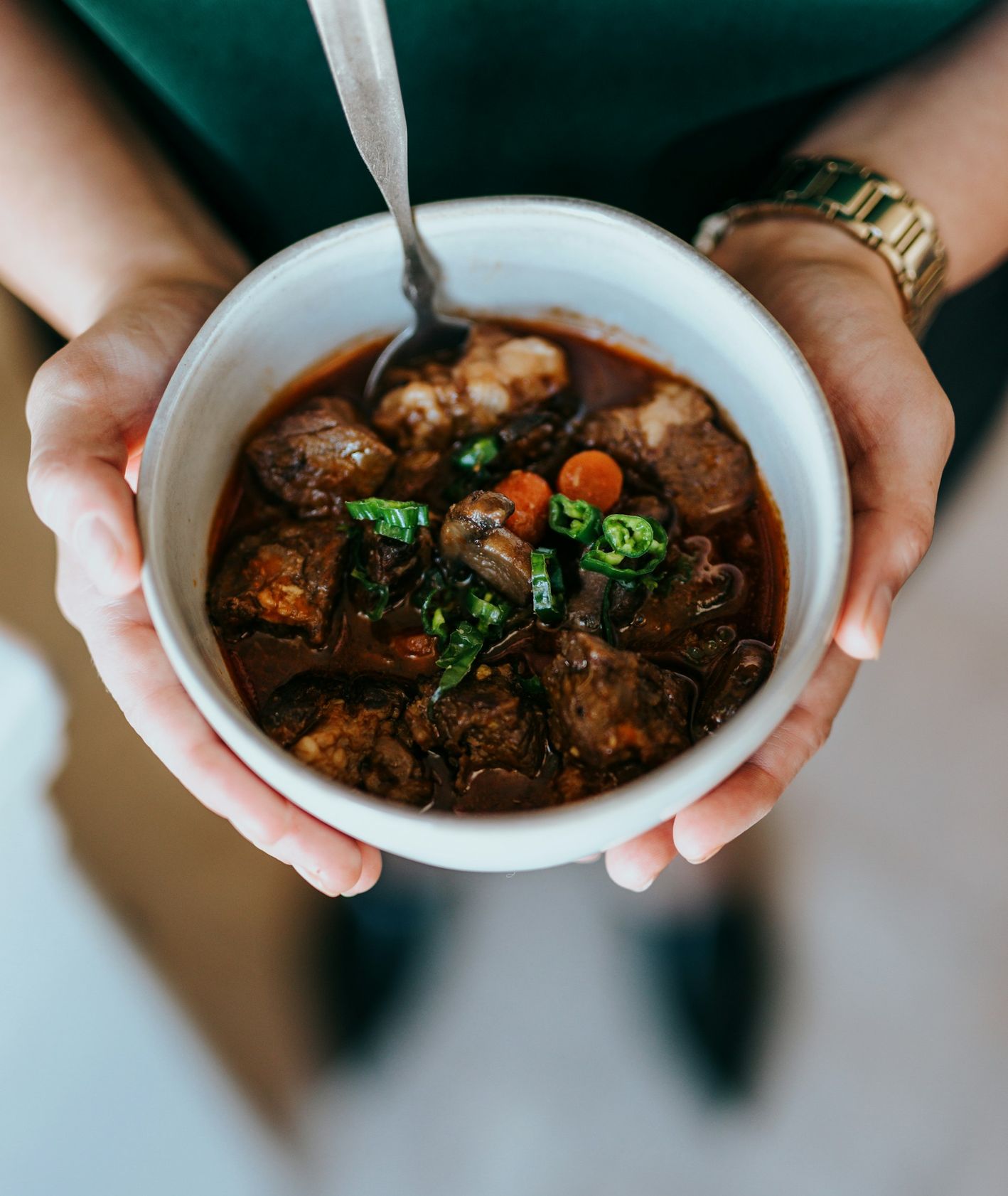 Do gulaszu z boczniaków warto dodać pinot noir (przepis i przygotowanie: Paweł Paszek-Pietruch, zdjęcie: dinnershow.studio, stylizacja: Małgorzata Białobrzycka)