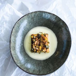 - 1 łyżka + kilka listków do podania
